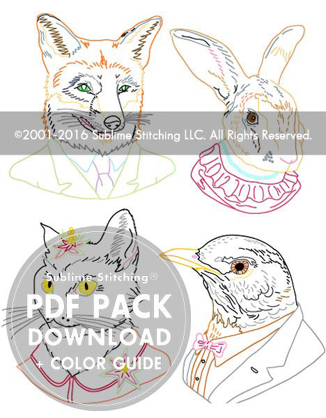 Ryan Berkley creates his own animal kingdom, where they all dress like aristocrats. Mr. Fox is hoping the demeure Miss Kitty will accept his invitation to tea, and Mr. Robin still isn't speaking to Mrs. Rabbit after that whole misunderstanding in the garden. Don't miss the extra designs (including a frame) in the PDF!