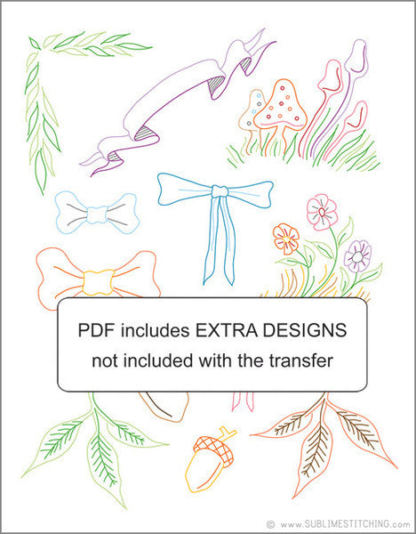 Choose iron-on transfers with downloadable PDF + COLOR guides, or get the PDF format alone. (You will need supplies for tracing and transferring when using a PDF printout.)