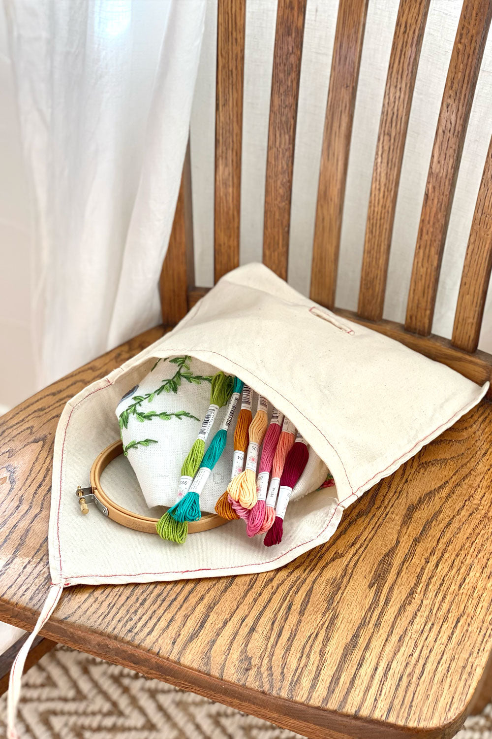 What better item to embroider extravagantly than your own embroidery project bag? You keep your most precious things in it: your tool case, your hoop, your scissors, your threads...and once you finish embroidering this splendid bag, it will hold your next embroidery project! And the next and the next, and...