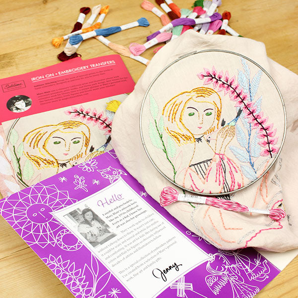 Mary Blair's visionary illustrations available now as embroidery patterns! This is the third release in my series of Sublime Stitching Embroidery Pattern Portfolios. The Mary Blair collection features eight pages of 8 1/2" x 11" iron on templates for hand embroidery, in a bound portfolio with perforated pages. The PDF version includes inspiration for colors and stitching! All eight pages of designs included in the portfolio are shown and will fit a range of hoop sizes. These designs are perfect for beginners and experts alike!
